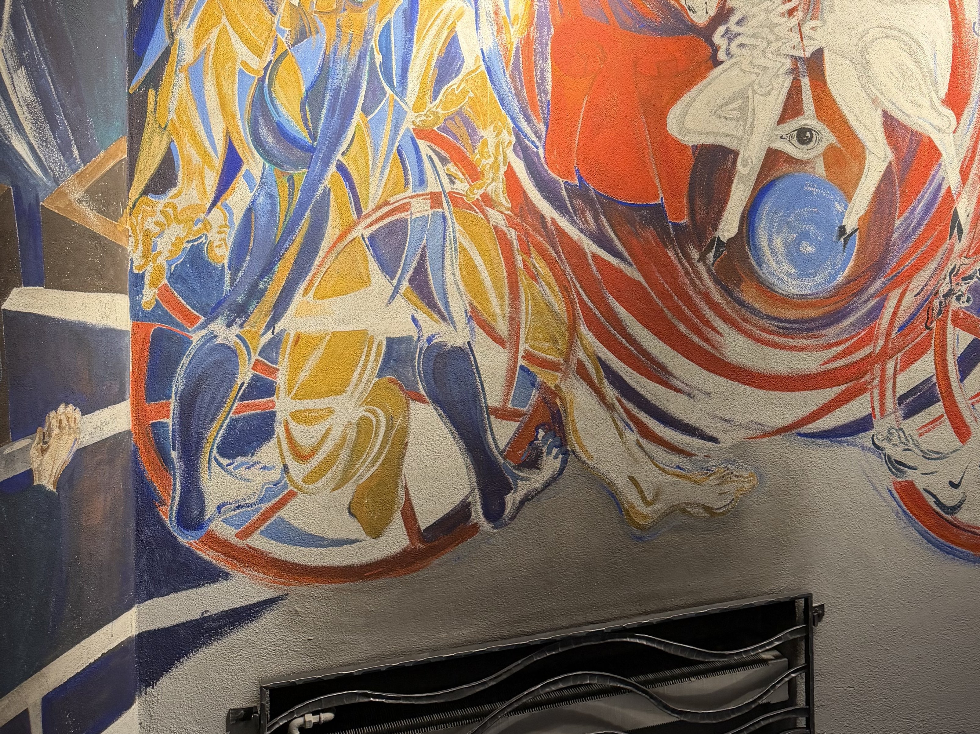 In der Unterkirche entstand zu Beginn der 1980er-Jahre ein beeindruckendes Kunstwerk: Die Hohenemser Künstlerin Heilgard Bertel erhielt damals den Auftrag, die Betonwände künstlerisch zu gestalten. Ziel war es, die Krypta als Meditations- und Diskussionsraum für Jugendliche zu nutzen. Und ja – die Darstellungen waren und sind Diskussionsstoff. Genau das macht sie so kraftvoll, führte jedoch gleichzeitig auch zu Kontroversen; sogar eine Übermalung wurde in Erwägung gezogen. Schlussendlich versank der Raum für Jahrzehnte in eine Art Dornröschenschlaf.